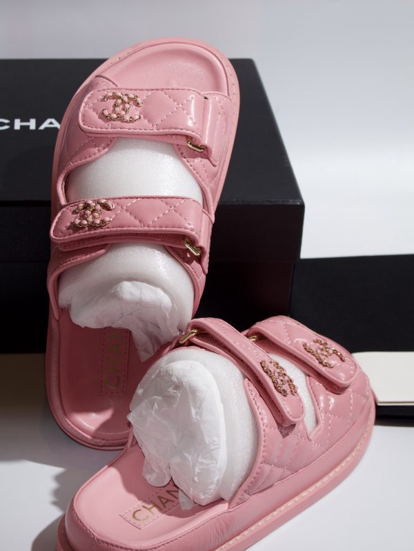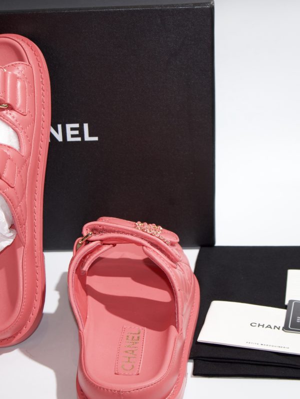 CHANEL LEATHER BACKLESS CC 'DAD' SANDALS (pink) size (5)UK size