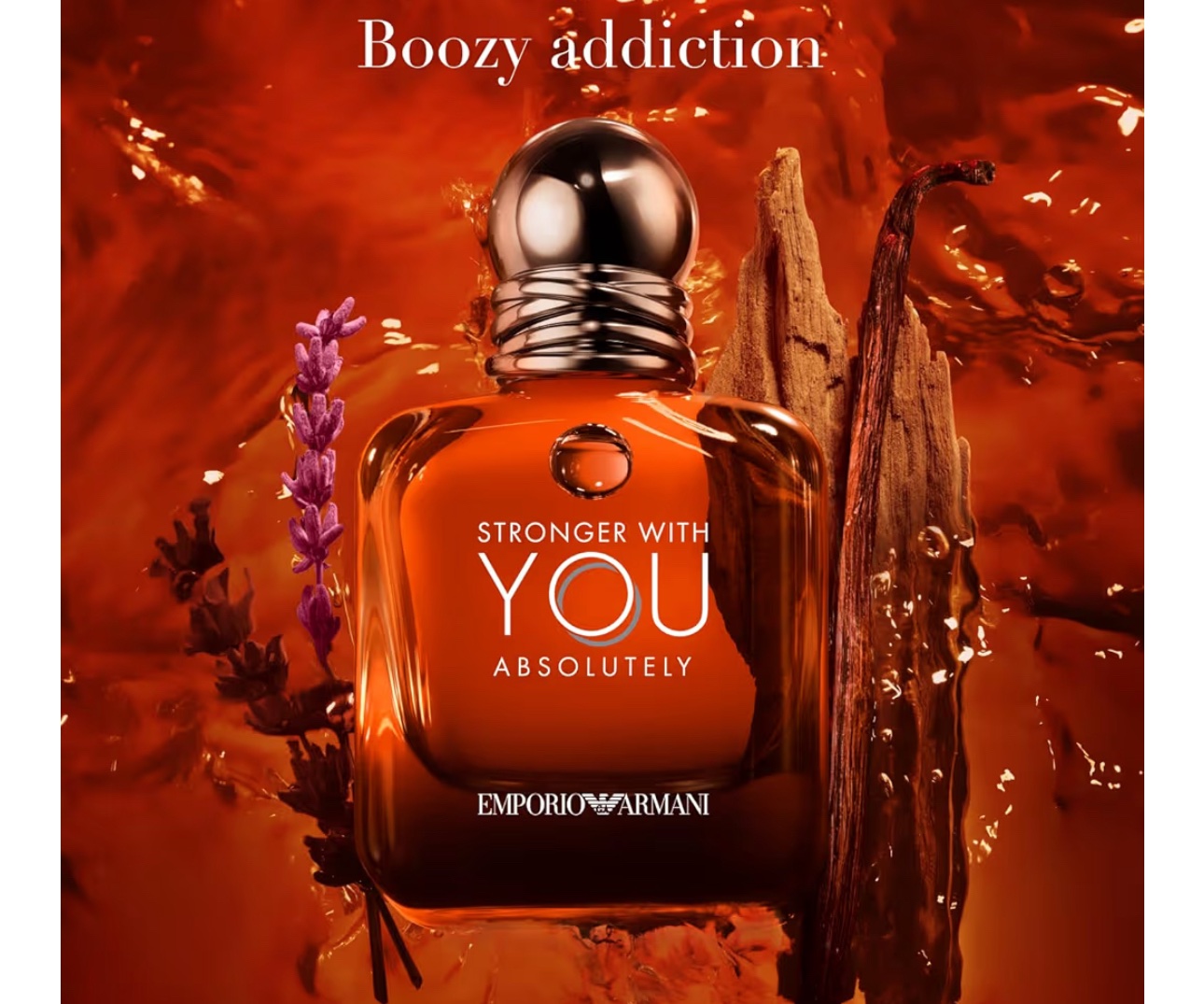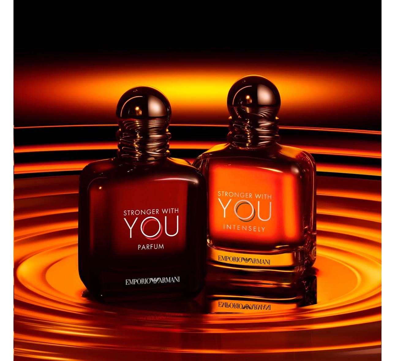 Emporio Armani Stronger With You Intensely Eau de Parfum is the latest fragrance to join the Emporio Armani Stronger with You range. This is an addictive fougere Eau de Parfum for him, recreating the story of young love into a scent. This oriental fragrance opens up with notes of spicy pink pepper and sugar-coated chestnut; the heart notes are vanilla and suede whilst the base dries down with notes of ambery woods and bourbon vetiver. The most predominant note in Stronger with You Intensely is the Suede. Available to buy as an Eau de Parfum spray in sizes 50 and 100ml, either online or in-store from Scentstore an authorised Giorgio Armani UK retailer.
