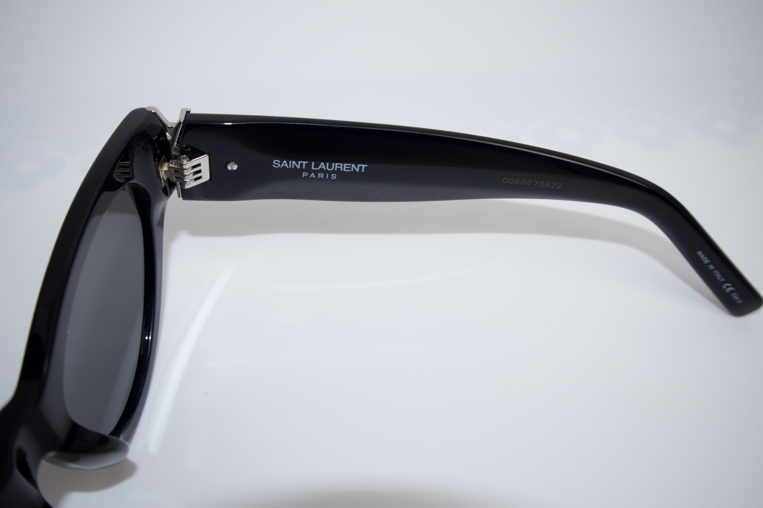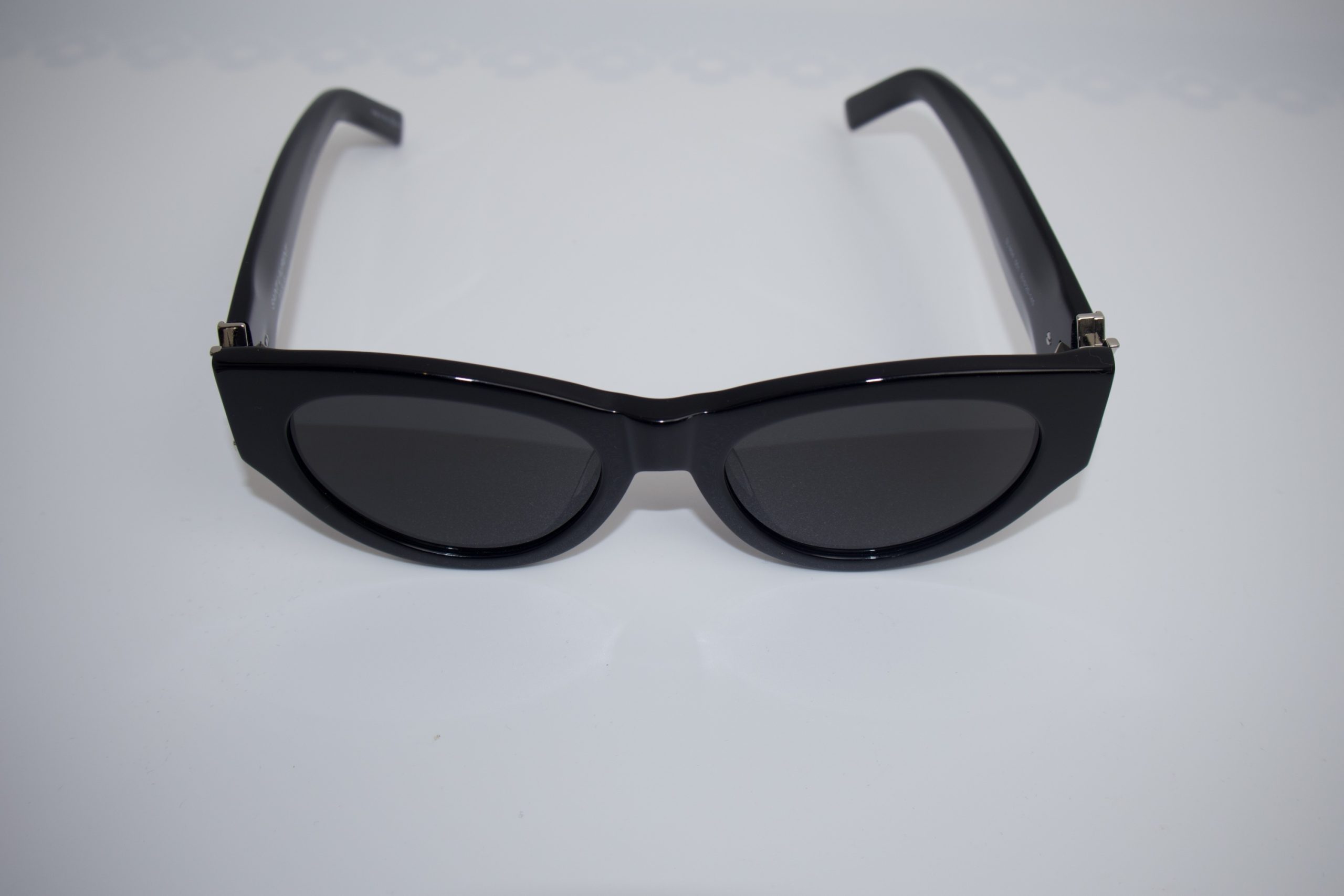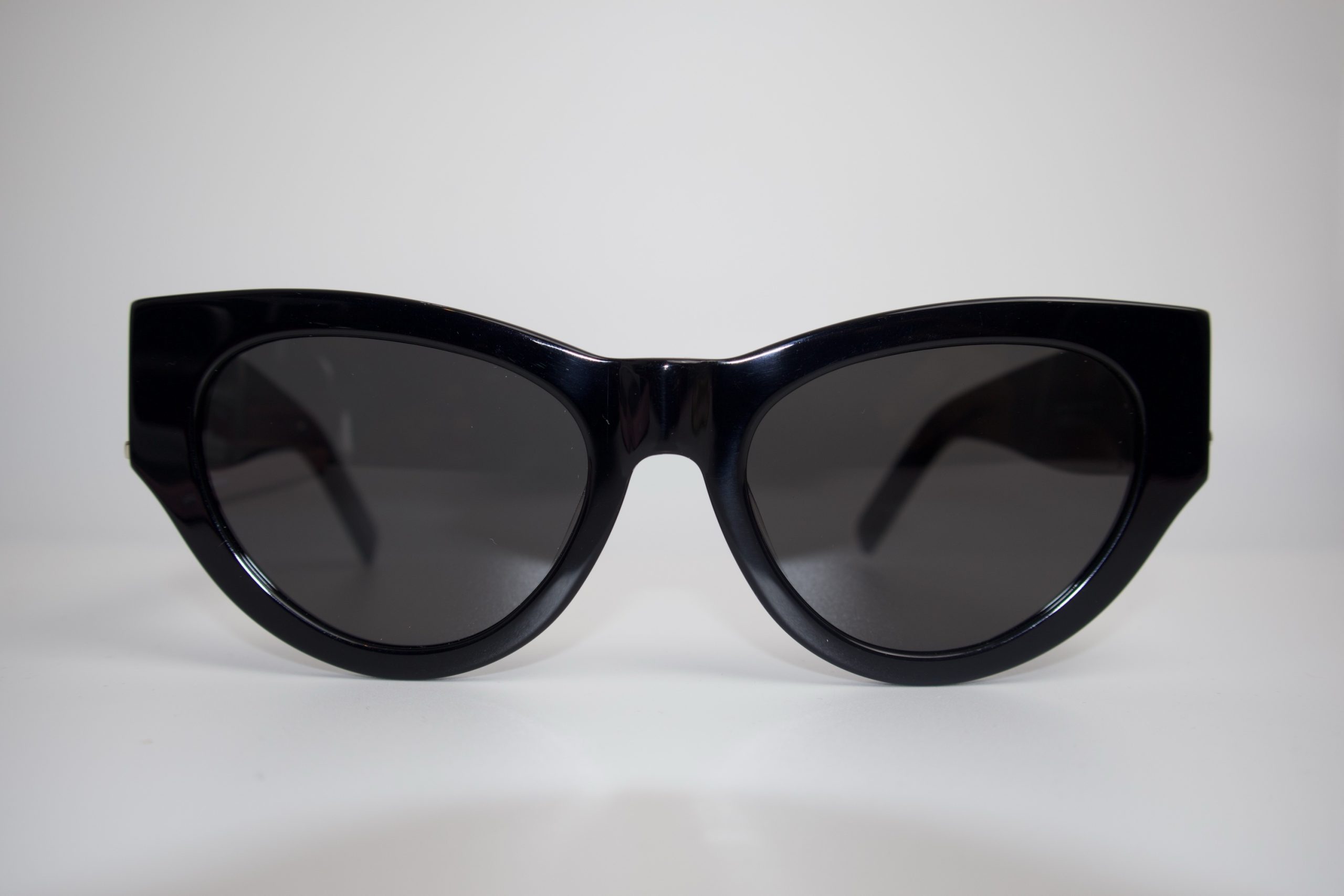 Embrace timeless elegance with these Saint Laurent cat-eye sunglasses, crafted in premium black acetate for a sleek, refined finish. The iconic cat-eye silhouette delivers a bold yet sophisticated look, perfectly capturing the effortless Parisian glamour Saint Laurent is known for.